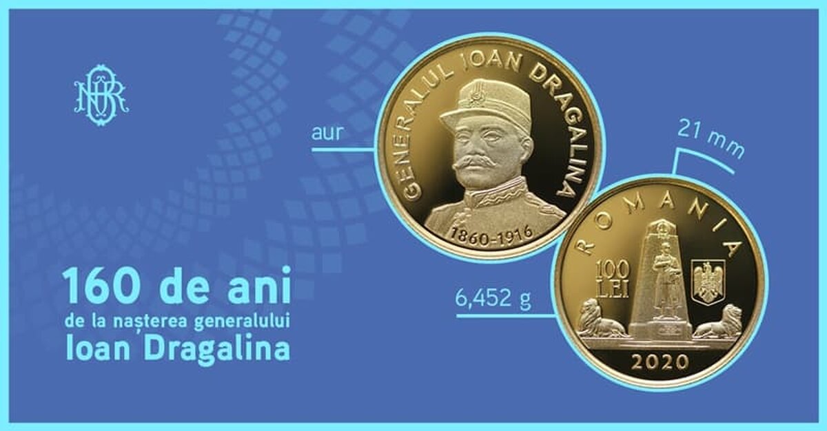 Monedele din aur, dedicate aniversării a 160 de ani de la nașterea generalului Ioan Dragalina, au statut de monedă legală pe teritoriul României.