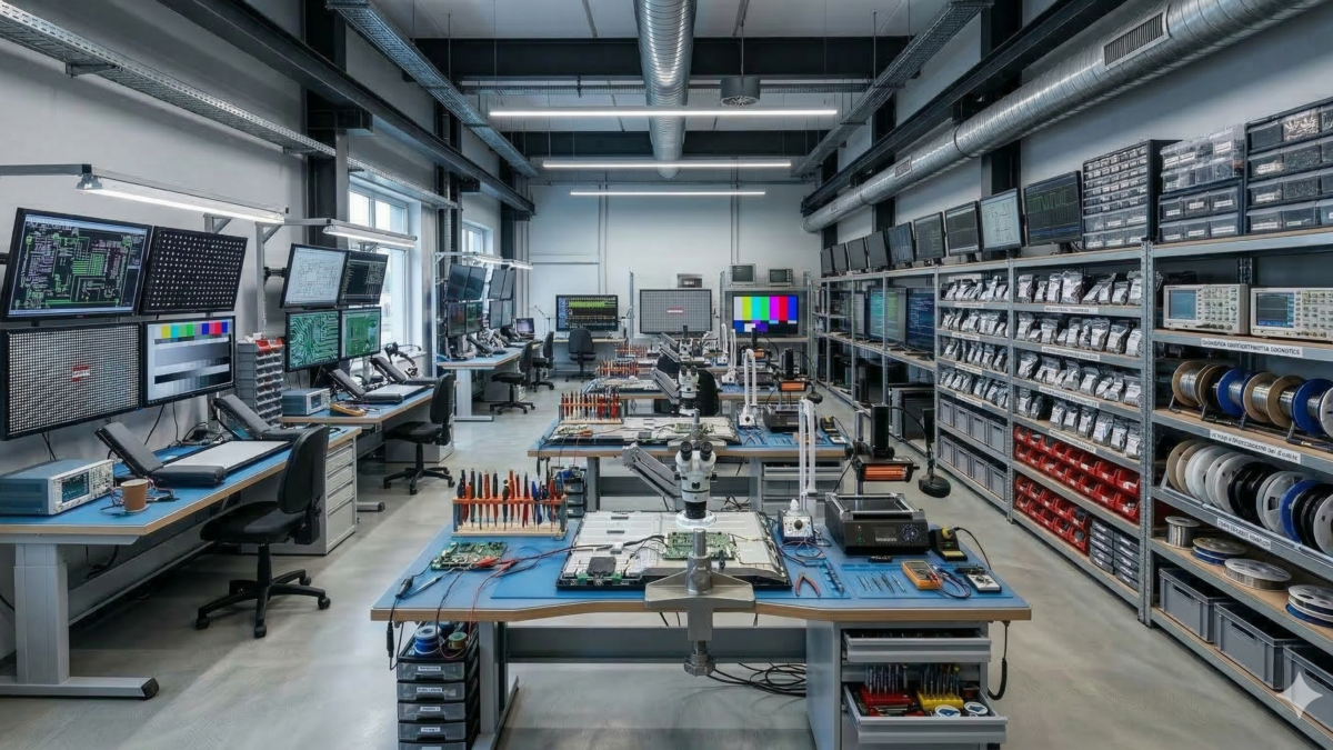 Odată ajuns în sediul central, aparatul intră pe mâinile unor specialiști cu o experiență cumulată de peste 30 de ani în domeniu. Laboratorul este echipat la standarde internaționale de microelectronică: dispune de stații de relipire BGA controlate digital, microscoape electronice pentru intervenții chirurgicale pe cablajele imprimate multistrat și sisteme avansate de programare pentru memoriile NAND și eMMC, adevăratul „creier” al oricărui Smart TV. Această abordare microscopică permite identificarea exactă a componentei defecte, evitând înlocuirea inutilă și extrem de costisitoare a întregii plăci de bază.