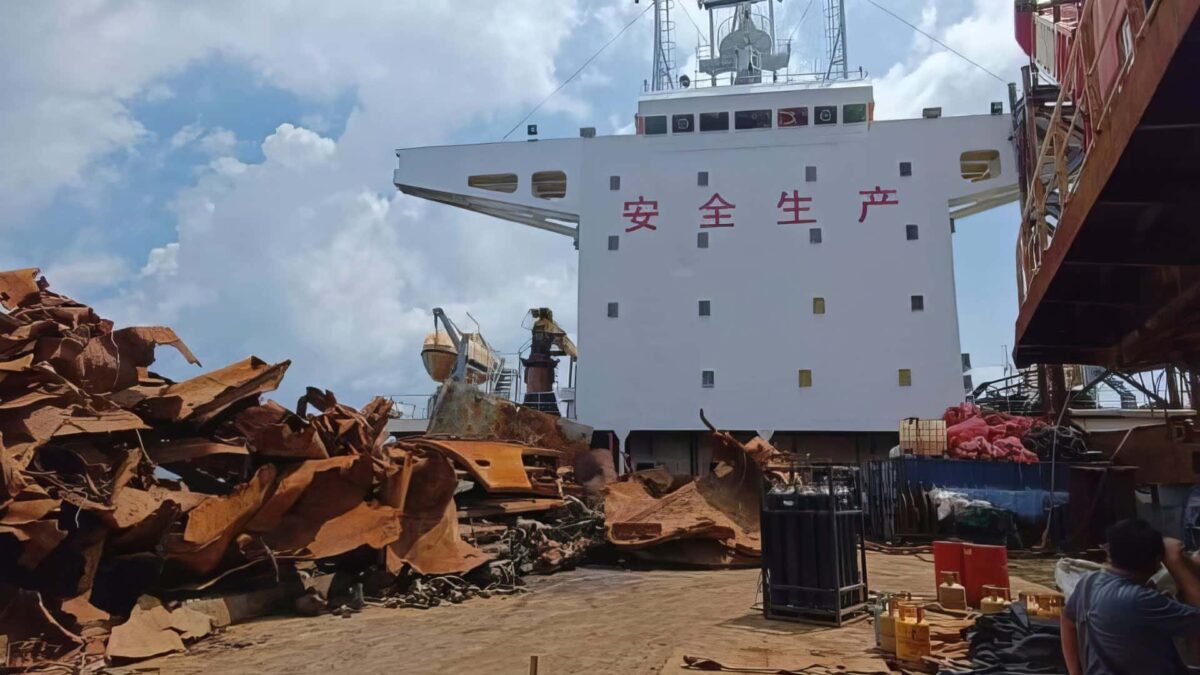 Fotografiile publicate de agenție au arătat grămezi de metal ruginit pe puntea ambarcațiunii, precum și macarale și echipamente de tăiat.