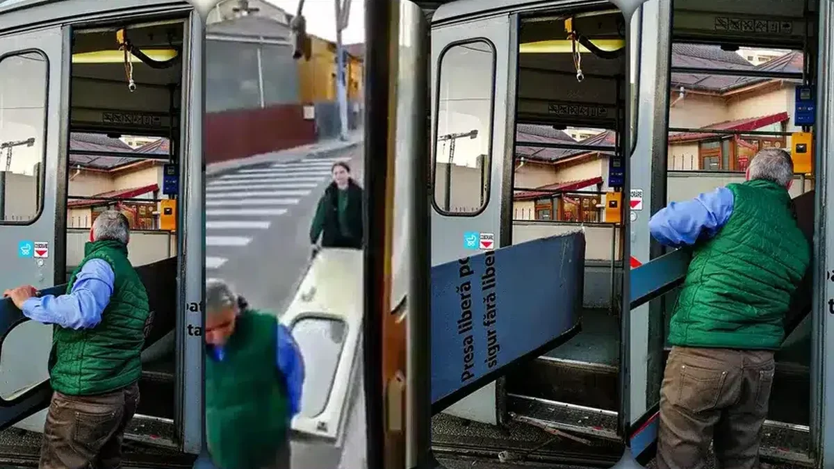Ușa din spate a unui tramvai a căzut pur şi simplu în timpul mersului. S-a întâmplat în centrul oraşului Iaşi. Unul dintre călători a filmat momentul în care vatmanul împreună cu o altă persoană recuperează de pe drum ușa desprinsă din tramvai.